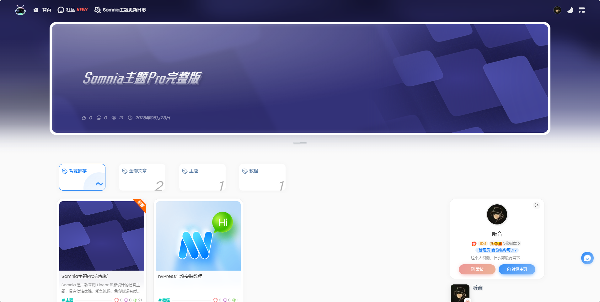 Somnia主题(Linear风格主题)子比平替主题