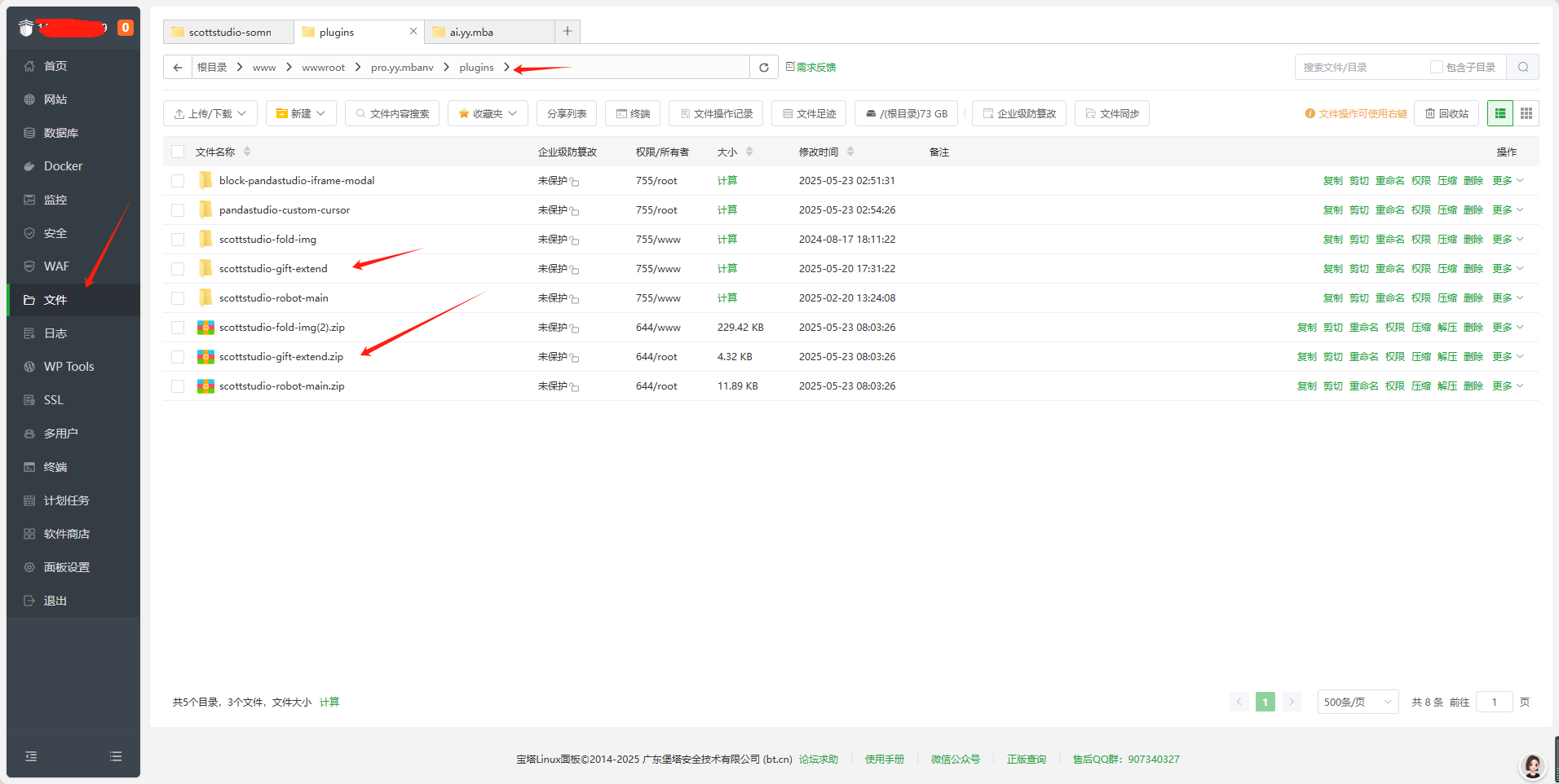 宝塔>文件根目录>plugins>长传插件文件>解压文件