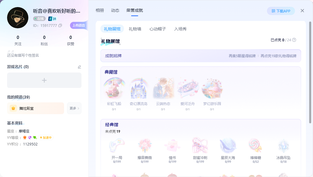 Somnia的礼物功能,延用于YY语音PC端Yo模板的风格,独特风格的礼物荣誉墙点亮展示效果。