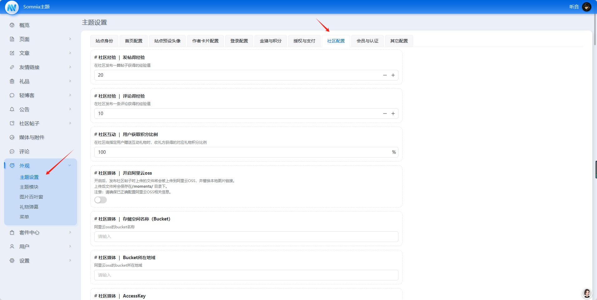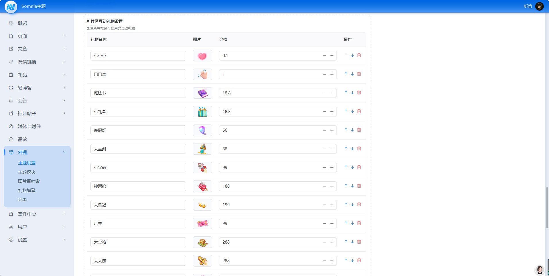 管理后台>外观>主题设置>社区配置>社区互动礼物设置