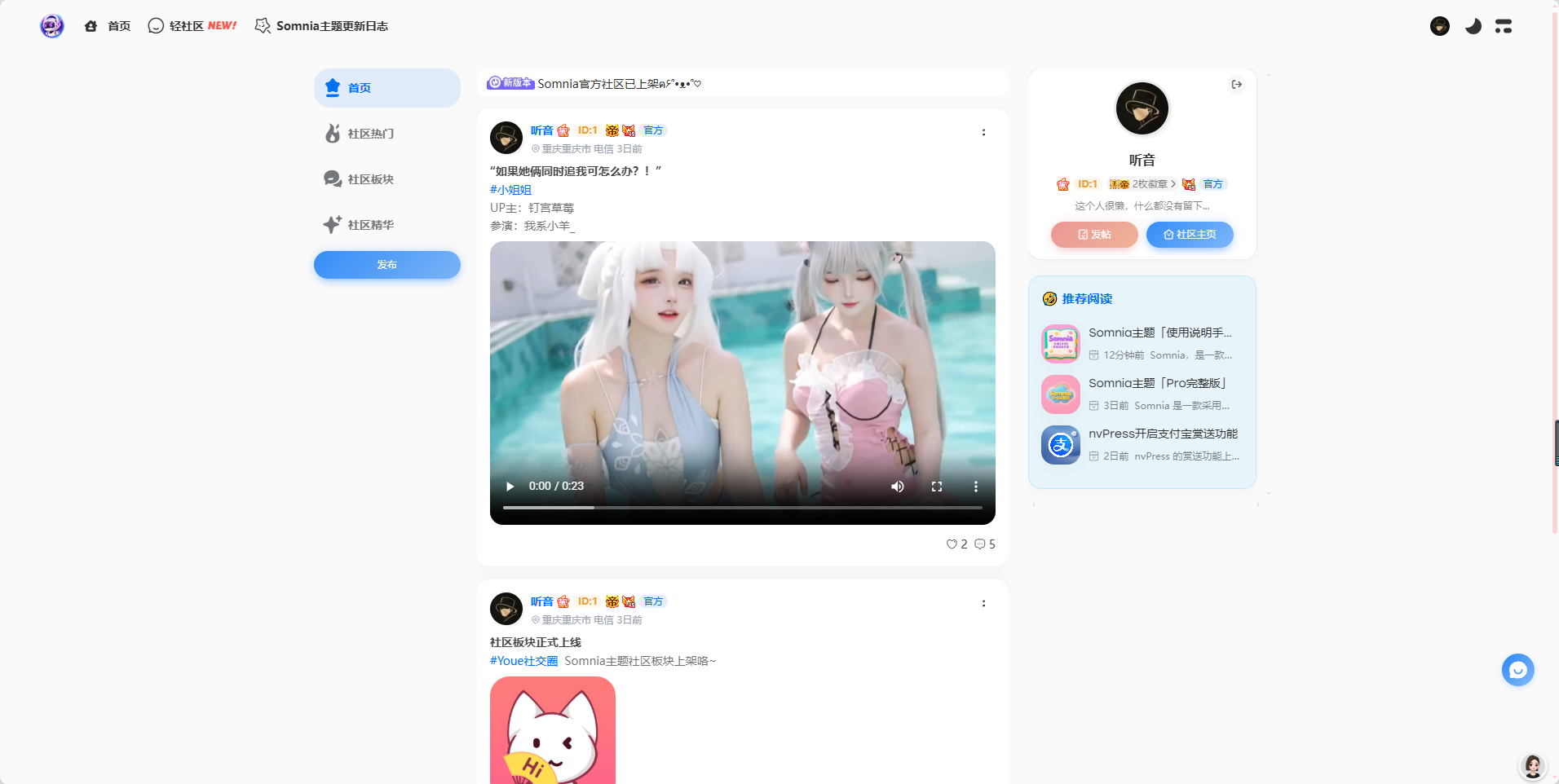 轻社区模块是一个轻松愉快的交流平台,旨在让用户轻松分享兴趣爱好、观点和经验。无论是探讨最新的电影、音乐,还是分享旅行经历或美食心得,轻社区都是一个理想的地方。这里不仅可以找到志同道合的伙伴,还可以结识新朋友,并且分享彼此的喜悦与热情。欢迎加入我们,与我们一起在这个充满乐趣和互动的社区里畅所欲言!