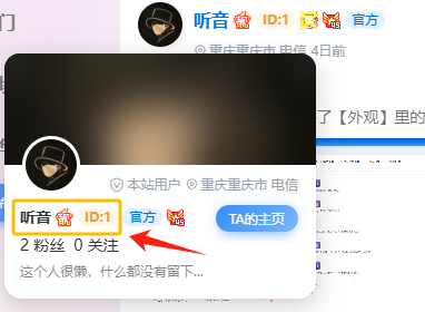 答:该ID靓号属于系统默认生成UID识别码(类似其他交互类网站用户拥有user以外,每位用户底层还存在一个不可变更的UID识别码。我们将其调用美化作为用户靓号,以方用户之间通过/author/ID来访问对方个人主页,提供用户交互)暂不支持修改或覆盖。